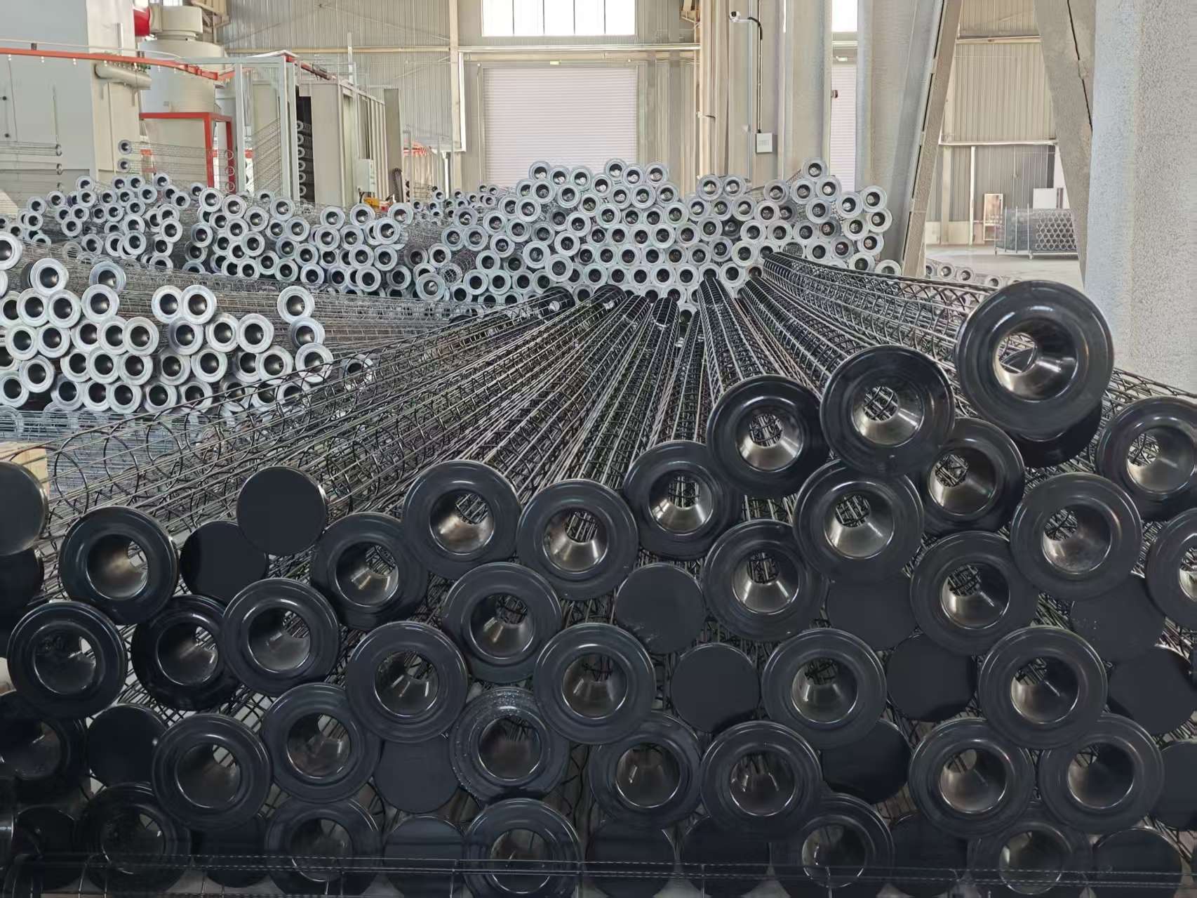 除塵濾袋袋籠口部精密設(shè)計:激光切割的環(huán)和垂直鋼絲確?!?.5mm 的公差,從而實現(xiàn)均勻的濾袋張力,防止空氣旁通。除塵器袋籠表面保護:可選的有機硅膠涂層可防止濾袋磨損和化學(xué)物質(zhì)粘附。